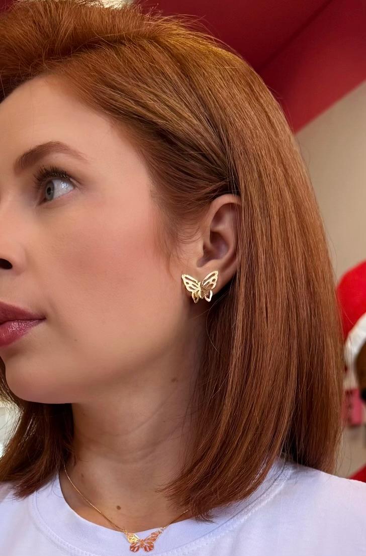 Conjunto Colar e Brinco Borboleta Vazada - Folheado a ouro 18k