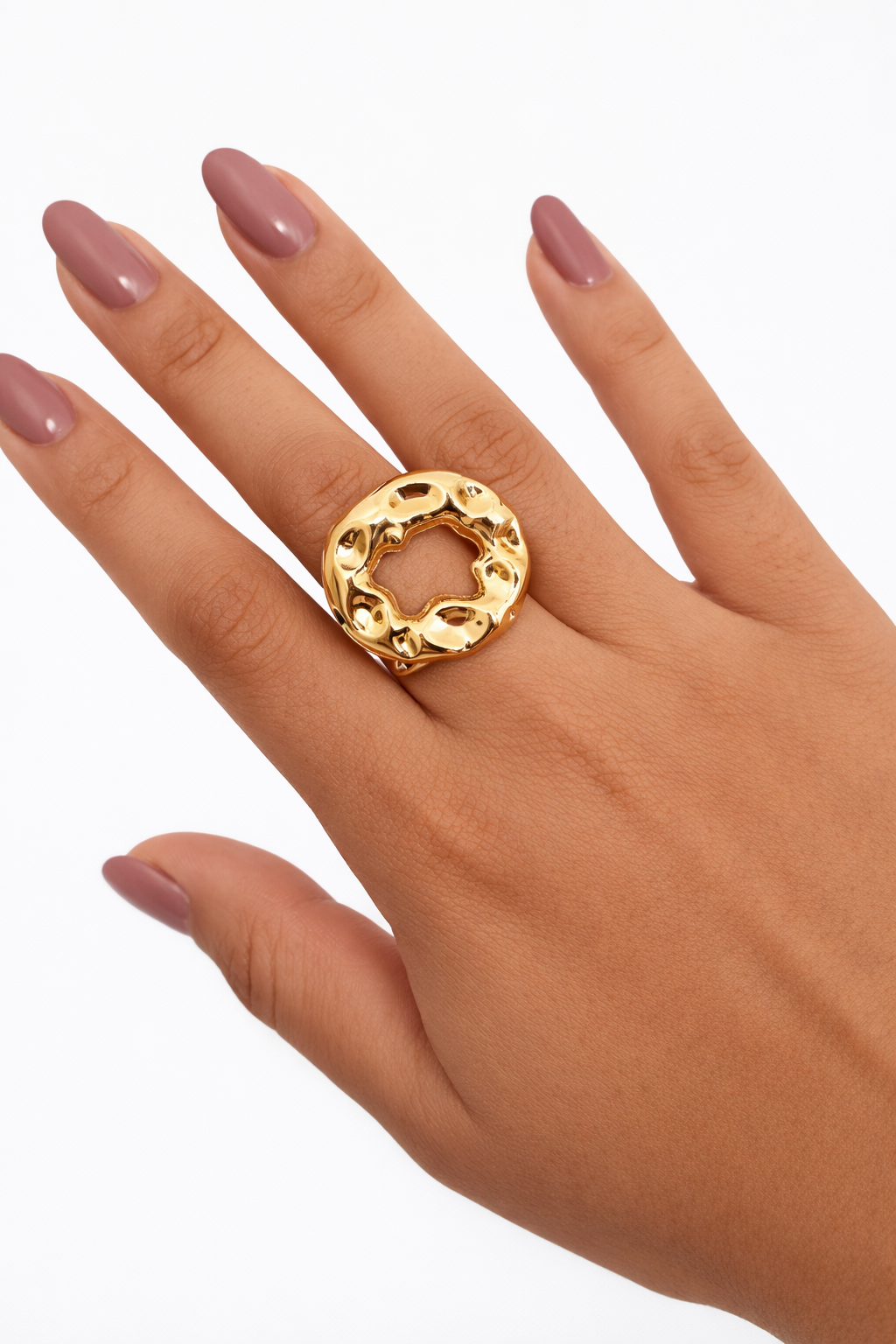 Anel martelado Regulavél - Folheado em Ouro 18k